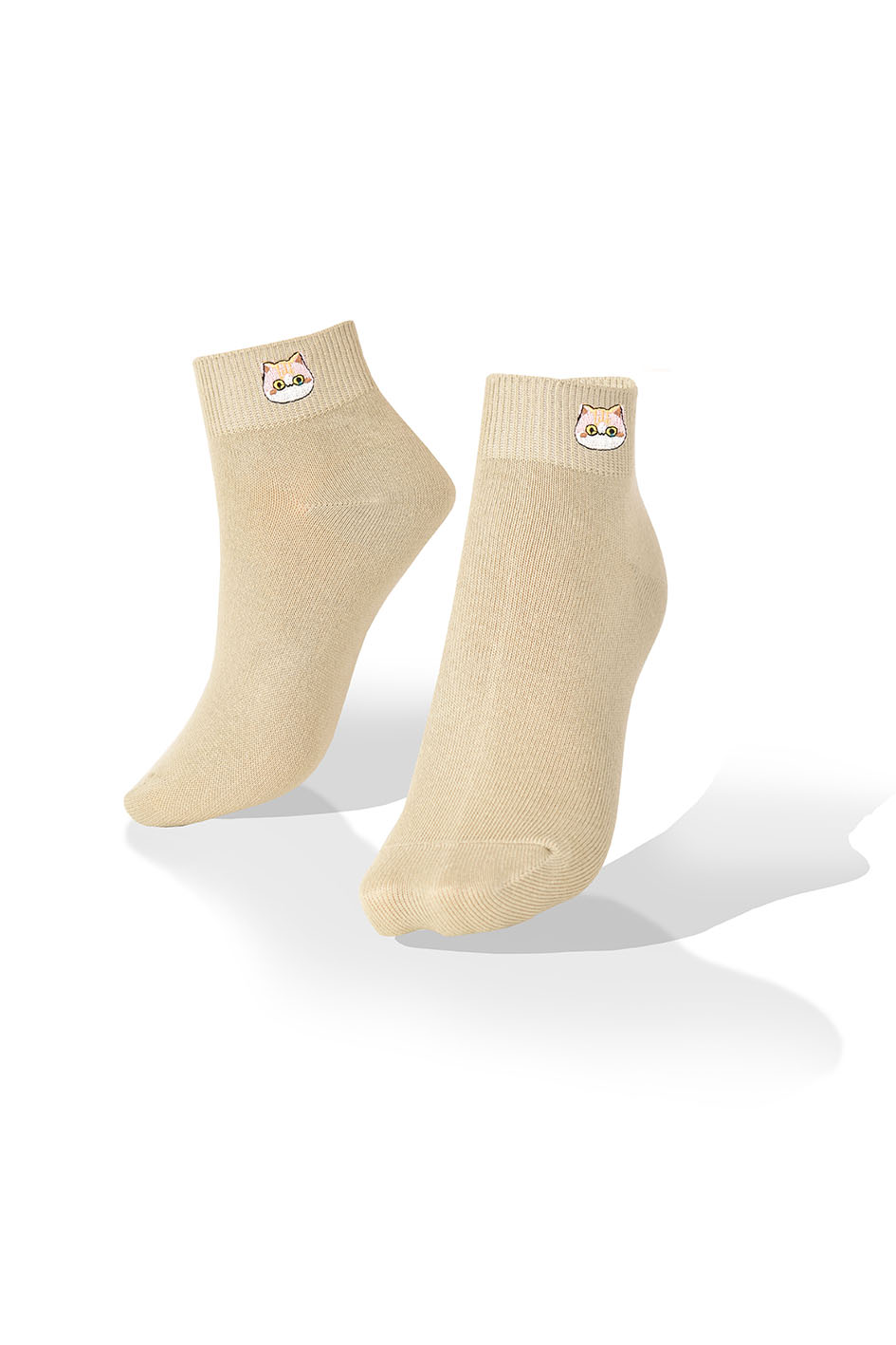 Soquetes Beige con Cara de Gato Bordada Aves del Plata™