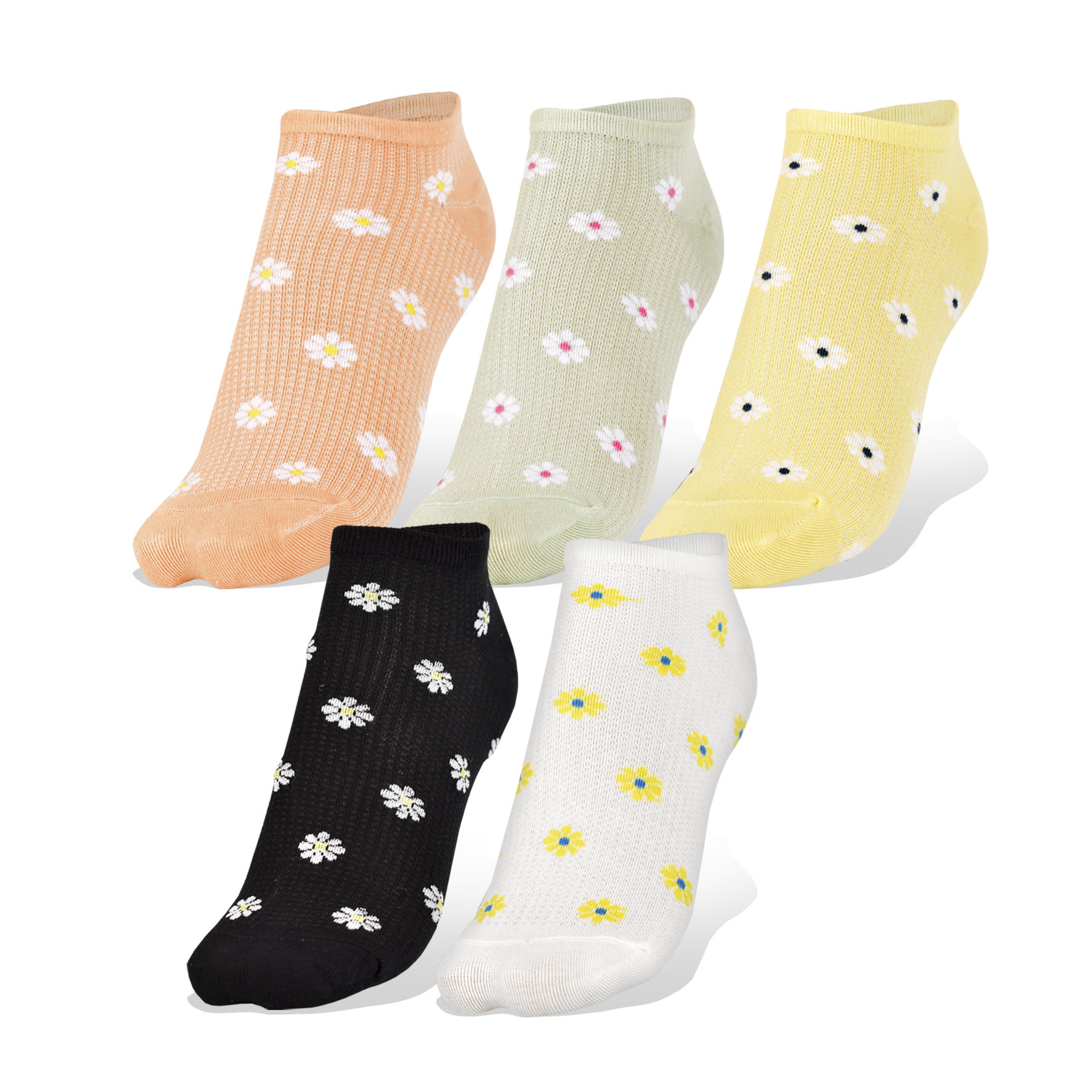 5 pares de soquetes multicolores con margaritas. 80% algodón.