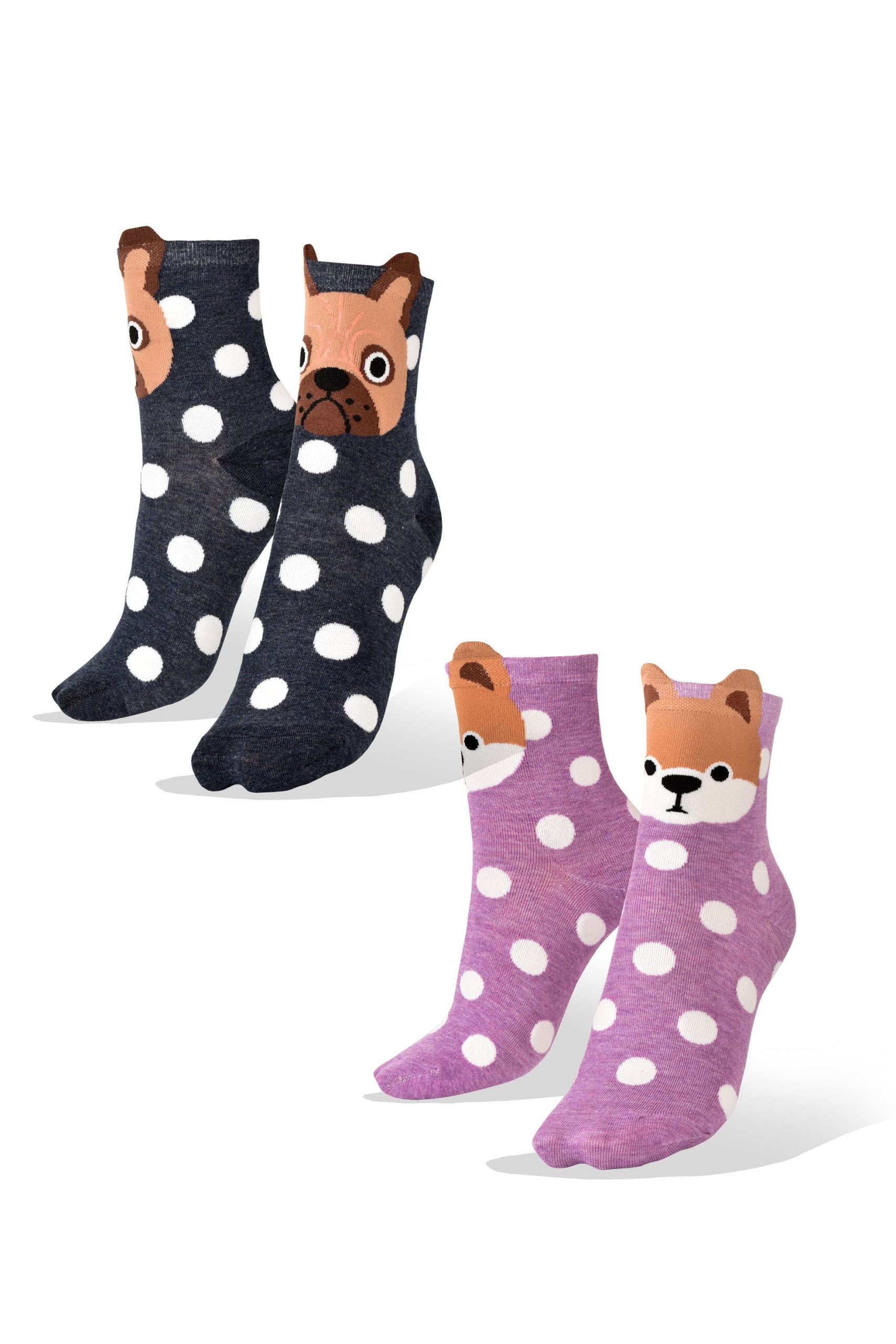 2 Pares Medias Caras de Perros en Fondo con Pintitas Aves del Plata™