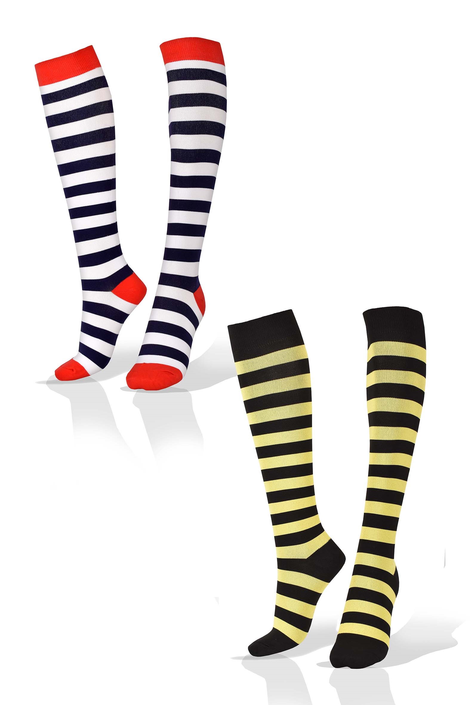 2 pares de Medias con Flores en Sinfonía de Blanco y Negro