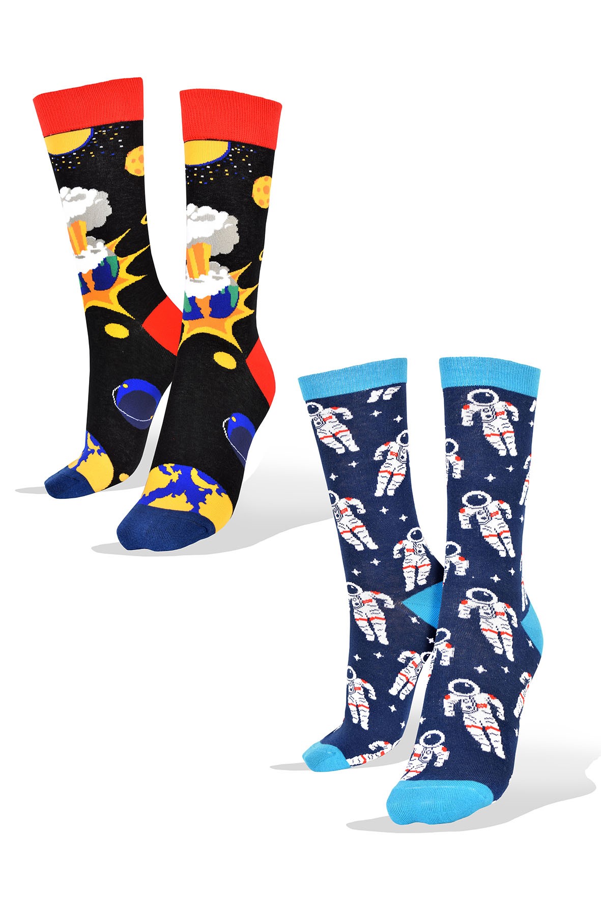 2 pares de Medias del Espacio con el Sol y Astronautas en Orbita Lunar Aves del Plata™