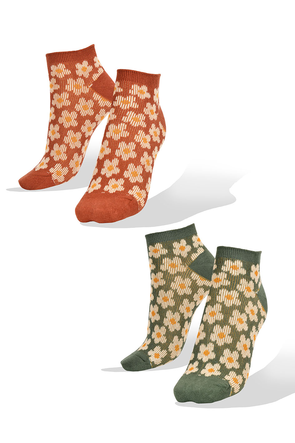 Medias Margaritas de Primavera en Fondo Terracota en Verde Oliva